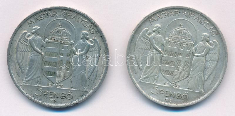 Beschreibung: 1939. 5P Ag "Horthy balra" (2x) T:1-,2 patina, karc, ph, ü.