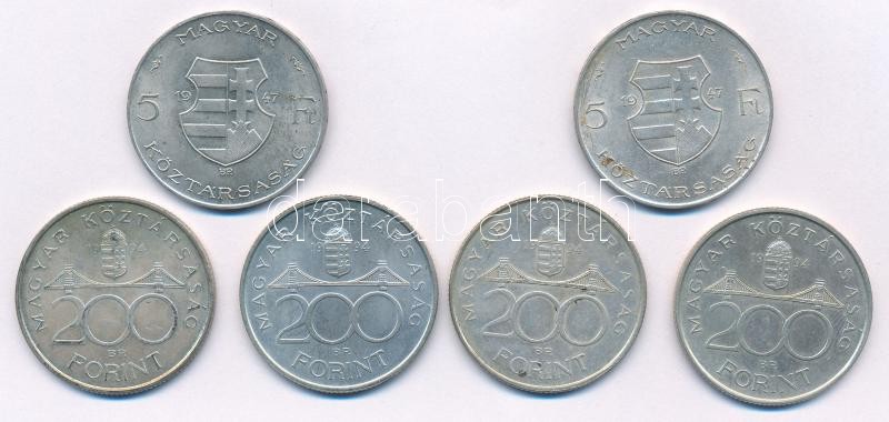 Beschreibung: 1947. 5Ft Ag "Kossuth" (2x) + 1994. 200Ft Ag "Deák" (4x) T:1--2- patina, kis ü.