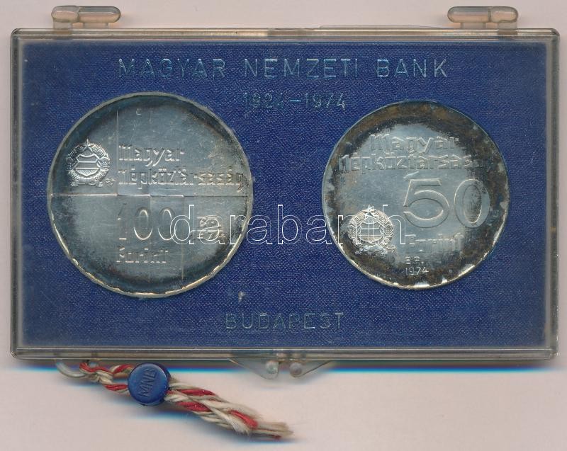 1974. 50Ft Ag "50 éves a Magyar Nemzeti Bank" + 100Ft Ag &qu... https://www.darabanth.com/de/420-Fernauktion/420.0/Numismatik/Ungarische-Munzen-und-Munzen-mit-ungarischem-Munzzeichen~2000008/1974-50Ft-Ag-50-eves-a-Magyar-Nemzeti-Bank-plus-100Ft-Ag-50-eves-a-Magyar-Nemzeti-Bank-eredeti-~II2621383