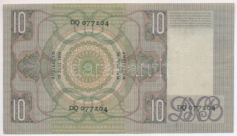 Netherlands 1933. 10 Gulden "DQ 077204" C:F tiny spot