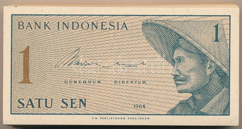 Indonesia 1964. 1 Sen (100x) within consecutive serials C:UNC,AU Krause P#90