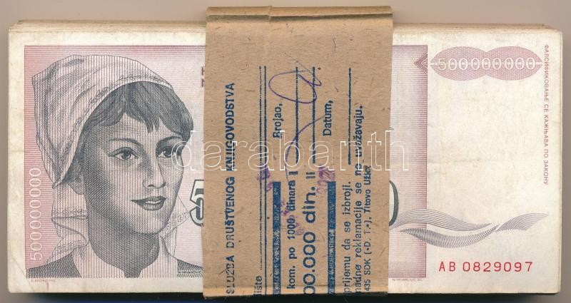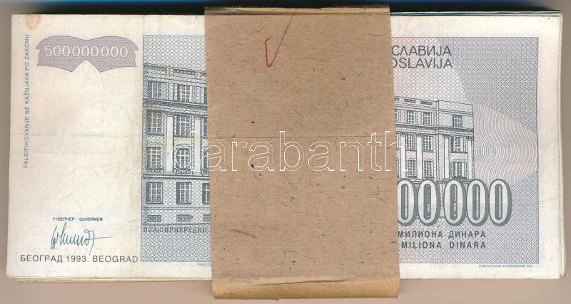 Jugoszlávia 1993. 500.000.000D (100x) eredeti, nem saját banki kötegelővel T:III Yugoslavia 1993. 500.000.000 Dinara (100x) in original, not the own wrapper C:F Krause P# 125