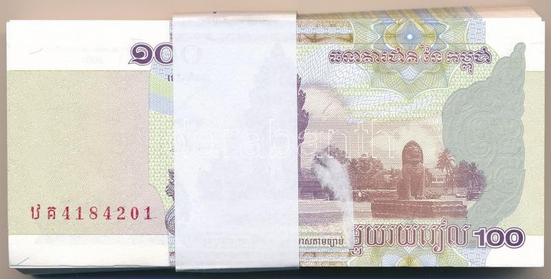 Beschreibung: Kambodzsa 2001. 100R (100x) kötegelővel, sorszámkövetők T:I,I- Cambodia 2001. 100 Riels (100x) with wrapper, consecutive serials C:UNC,AU Krause P#53