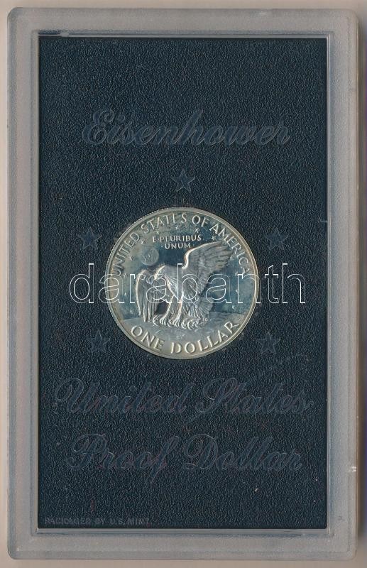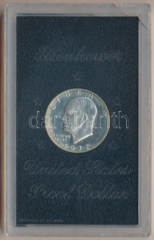 Amerikai Egyesült Államok 1972S 1$ Ag "Eisenhower" dísztokban, eredeti U.S.Mint tokban T:PP patina, a műanyag tok megrepedt