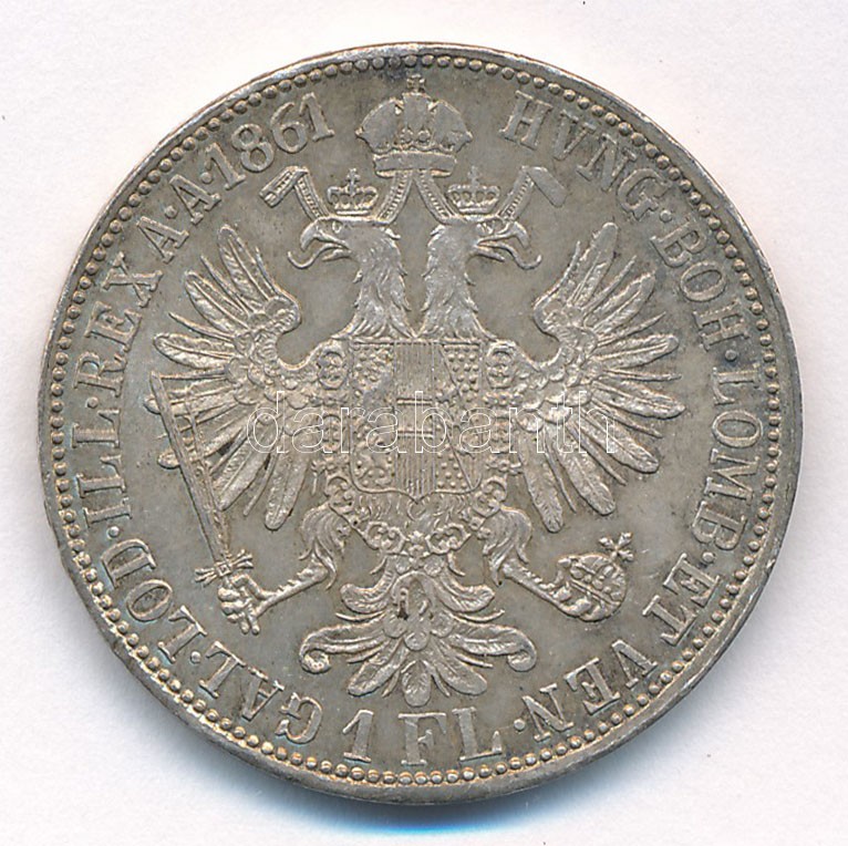 Ausztria 1861A 1Fl Ag "Ferenc József" T:1- kis ph. Austria 1... https://www.darabanth.com/de/420-Fernauktion/420.0/Numismatik/Weltweit-Munzen~2000016/Ausztria-1861A-1Fl-Ag-Ferenc-Jozsef-T1-kis-ph-Austria-1861A-1-Florin-Ag-Franz-Joseph-CAU-ti~II2654513