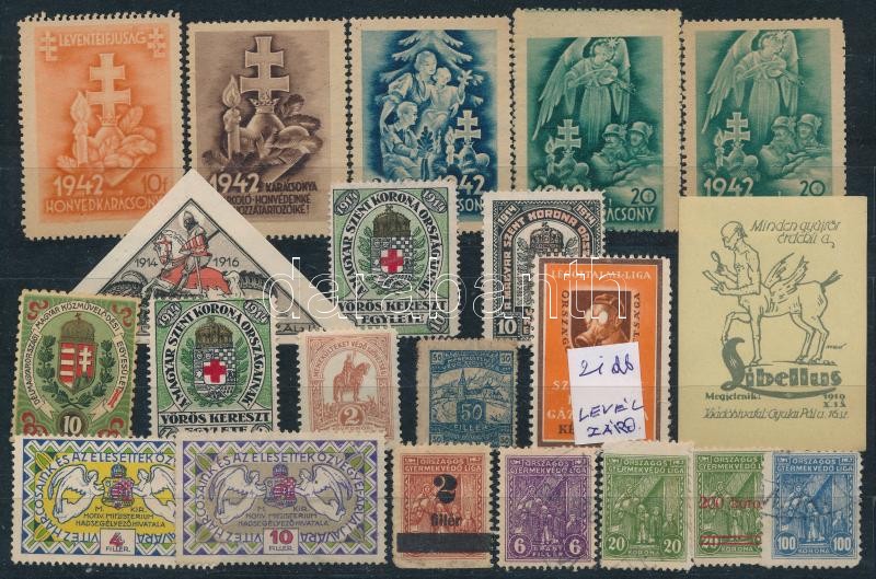 Beschreibung: 21 db régi magyar levélzáró stecklapon
