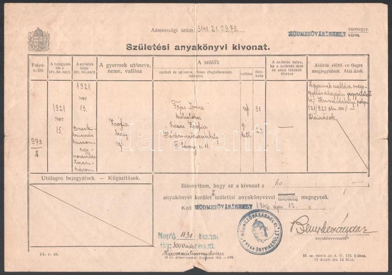 cca 1930-1946 3 db klf okmánybélyeges okmány https://www.darabanth.com/de/420-Fernauktion/420.0/Philatelie-und-Postgeschichte-Ungarn/Stempelmarken~500017/cca-1930-1946-3-db-klf-okmanybelyeges-okmany~II2664193