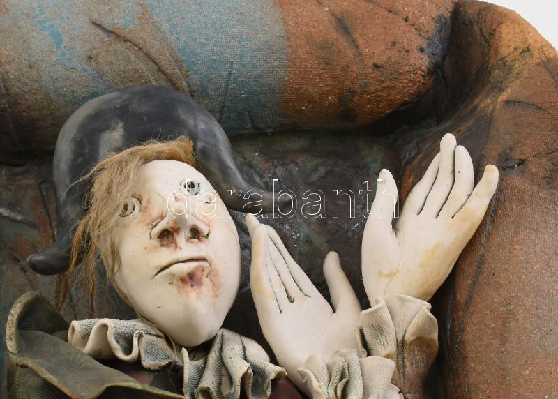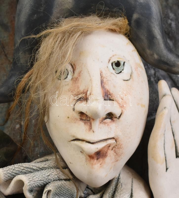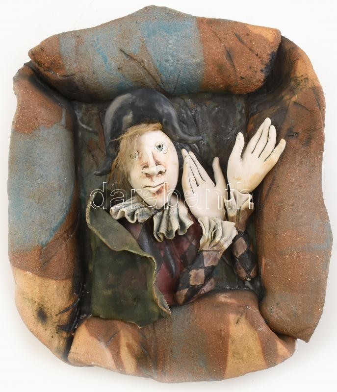 Beschreibung: Vertel Andrea (1953- ): Pierot, mázas, samottos, fali kerámia, jelzett, hibátlan, 38x33 cm