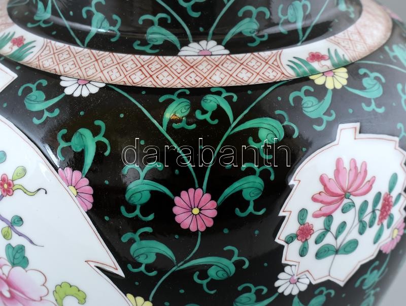 Beschreibung: Herendi SN (Siang Noir) mintás barokk fedeles váza. Kézzel festett porcelán. Hibátlan, jelzett. m: 42cm