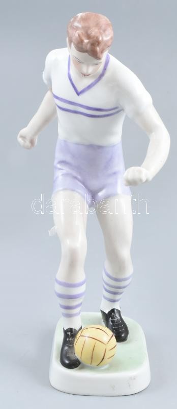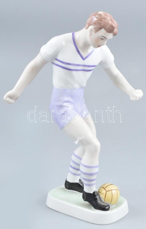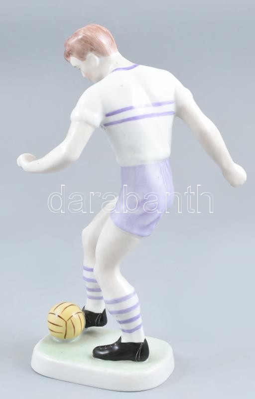 Beschreibung: Hollóházi porcelán focista, kézzel festett, jelzett, helyenként kopásokkal, m: 28 cm