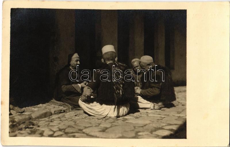 Beschreibung: 1918 Albanien, Tiranenser im Gespräch / Albán folklór, tirana-i férfiak / Albanian folklor from Tirana