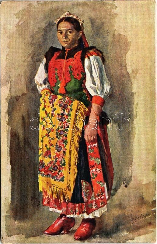 Beschreibung: Magyar népviselet XXVI. sorozat. Jákótelki leány (Kalotaszeg, Erdély) / Ungarische Volkstypen aus Jákótelke (Siebenbürgen) / Transylvanian folklore from Horlacea s: Edvi Illés Aladár