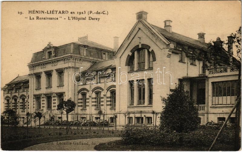 Hénin-Liétard (Hénin-Beaumont), "La Renaissance" L'Hopital Darey / hos... https://www.darabanth.com/de/421-Fernauktion/421.0/Ansichtskarten/Frankreich~1500071/Henin-Lietard-Henin-Beaumont-La-Renaissance-LHopital-Darey-hospital-b~II2674001