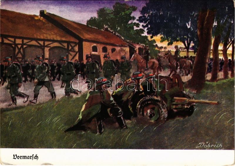 Vormarsch / WWII German military art postcard s: Döbrich (EK) https://www.darabanth.com/de/421-Fernauktion/421.0/Ansichtskarten/Militaria~1500032/Vormarsch-WWII-German-military-art-postcard-s-Dobrich-EK~II2676438