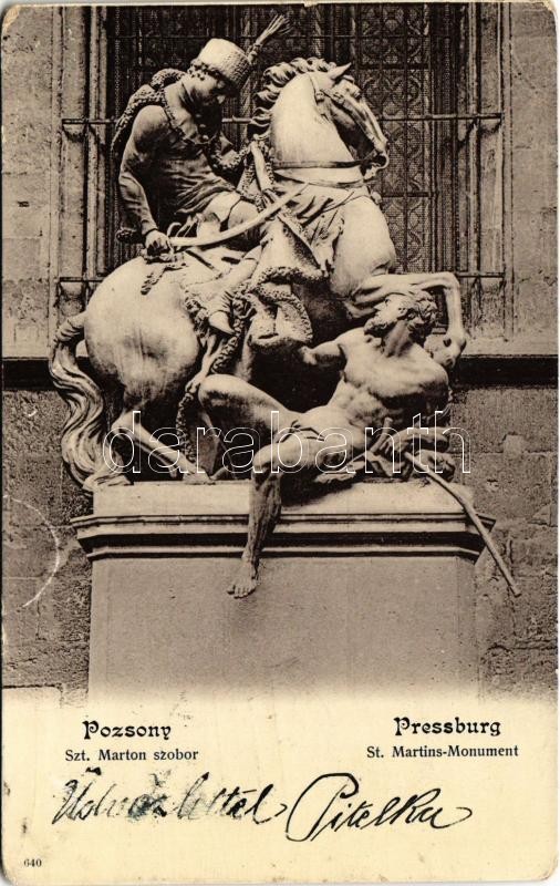 1901 Pozsony, Pressburg, Bratislava; Szt. Márton szobor / St. Martins-... https://www.darabanth.com/de/421-Fernauktion/421.0/Ansichtskarten/Slowakei~1500007/1901-Pozsony-Pressburg-Bratislava-Szt-Marton-szobor-St-Martins-Monument-Rb~II2672820