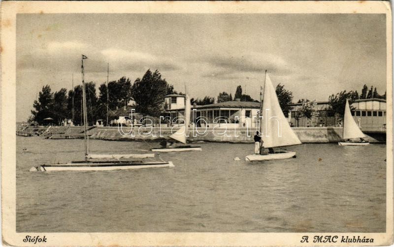 1941 Siófok, MAC (Magyar Atlétikai Club) klubháza, vitorlások (EK) https://www.darabanth.com/de/421-Fernauktion/421.0/Ansichtskarten/Ungarn~1500005/1941-Siofok-MAC-Magyar-Atletikai-Club-klubhaza-vitorlasok-EK~II2672653