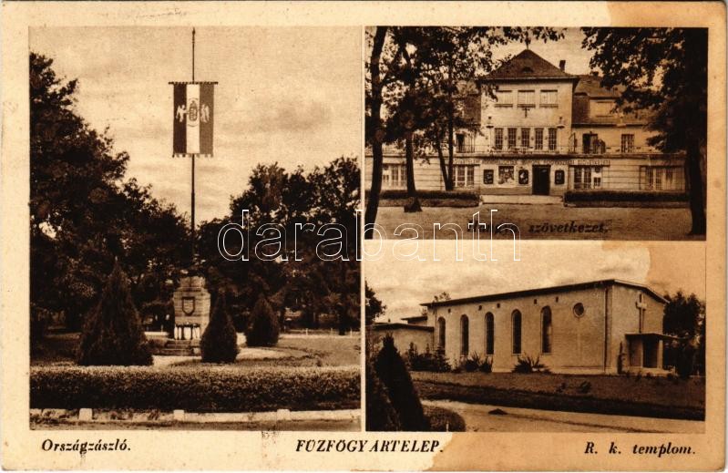 1943 Balatonfűzfő, Fűzfőgyártelep, Országzászló, Római katolikus templ... https://www.darabanth.com/de/421-Fernauktion/421.0/Ansichtskarten/Ungarn~1500005/1943-Balatonfuzfo-Fuzfogyartelep-Orszagzaszlo-Romai-katolikus-templom-Hangya-szovetkez~II2671405