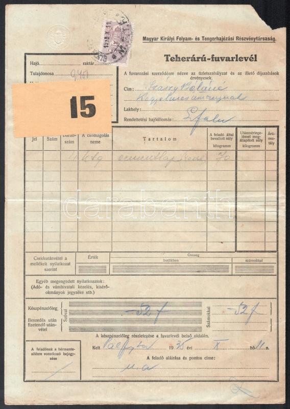 1935 Teheráru-fuvarlevél illetékbélyeggel https://www.darabanth.com/de/421-Fernauktion/421.0/Kunst-Dokumente-andere-Sammelgebiete/Dokument~500018/1935-Teheraru-fuvarlevel-illetekbelyeggel~II2672266