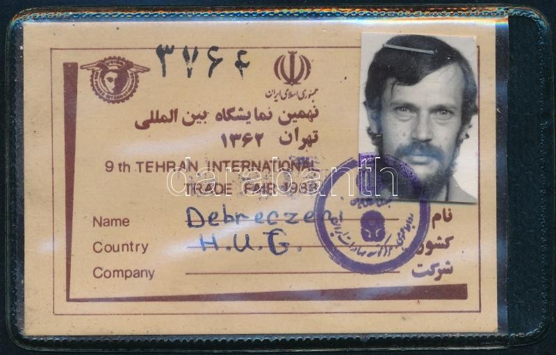 1988 Iráni Nemzetközi Vásár arcképes igazolványa magyar személy részér... https://www.darabanth.com/de/421-Fernauktion/421.0/Kunst-Dokumente-andere-Sammelgebiete/Dokument~500018/1988-Irani-Nemzetkozi-Vasar-arckepes-igazolvanya-magyar-szemely-reszere~II2673416
