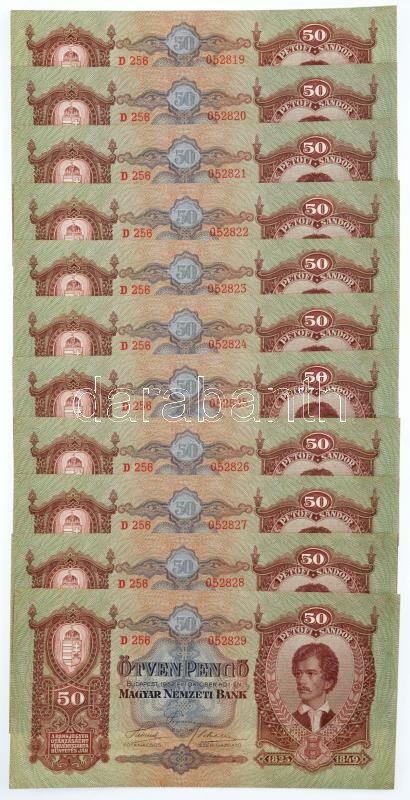 Beschreibung: 1932. 50P (11x) "D 256 052819-052829" sorszámkövetők T:II kis folt