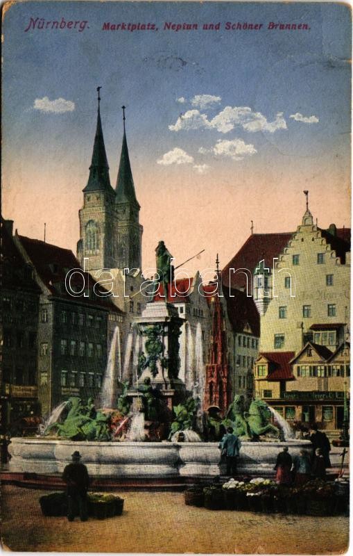 1914 Nürnberg, Nuremberg; Marktplatz, Neptun und Schöner Brunnen / mar... https://www.darabanth.com/de/422-Fernauktion/422.0/Ansichtskarten/Deutschland~1500103/1914-Nurnberg-Nuremberg-Marktplatz-Neptun-und-Schoner-Brunnen-market-fountain-tear~II2681980