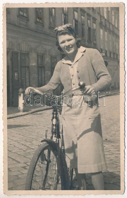 1943 Hölgy kerékpárral / Lady with bicycle. photo https://www.darabanth.com/de/422-Fernauktion/422.0/Ansichtskarten/Sport~1500055/1943-Holgy-kerekparral-Lady-with-bicycle-photo~II2685013
