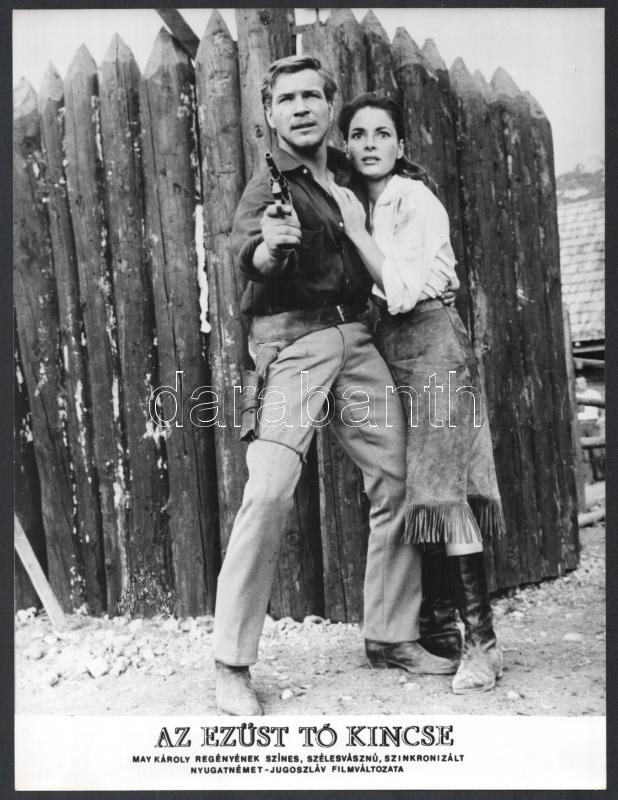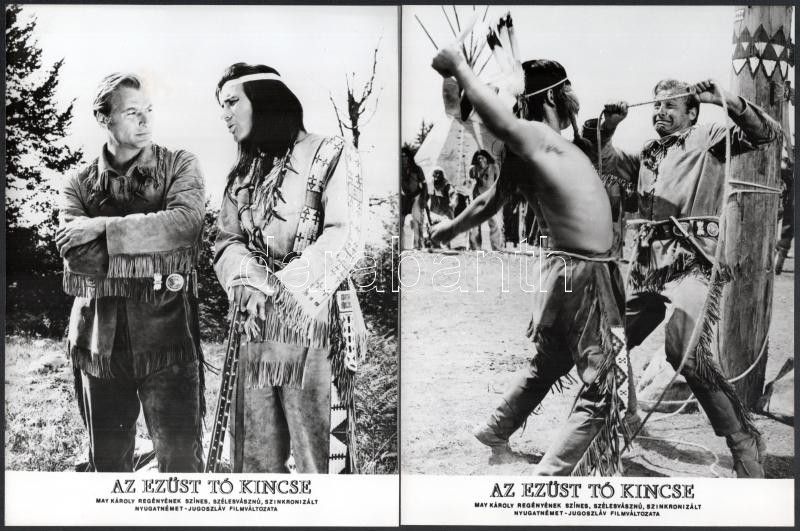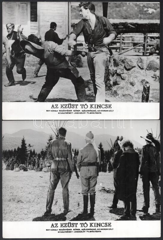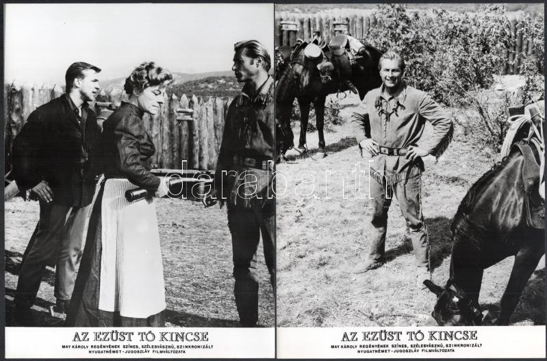 cca 1962 ,,Az Ezüst-tó kincse" című nyugatnémet - jugoszláv film jelenetei és szereplői, 11 db vintage produkciós filmfotó, ezüst zselatinos fotópapíron, a használatból eredő (esetleges) kisebb hibákkal, 24x18 cm