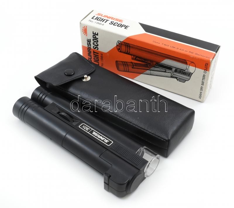 Beschreibung: Sunrise Light Scope No. 1984 japán gyártmányú hordozható mikroszkóp / nagyító, 30x, újszerű állapotban, eredeti dobozában, leírással