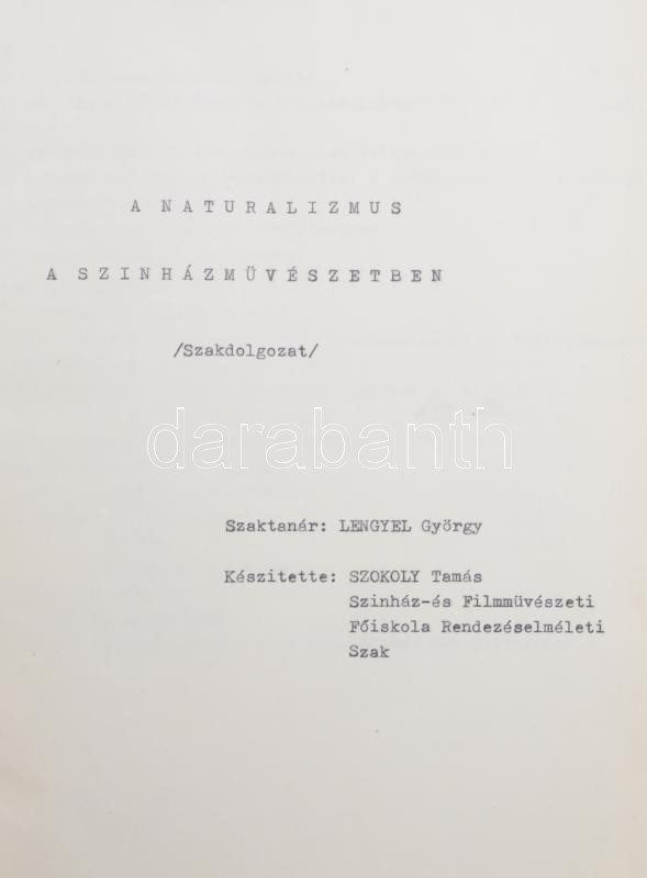 1979 Szokoly Tamás (1947-2009) színházi rendező, Színház és Filmművészeti Főiskola Rendezéselméleti szakos szakdolgozata. (Szaktanár: Lengyel György.), 4+122 p.
