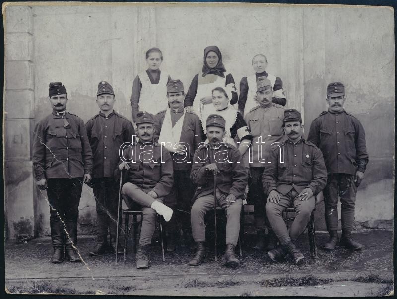 cca 1914-1918 Sebesült katonák ápolónőkkel, keményhátú fotó, felületi ... https://www.darabanth.com/de/422-Fernauktion/422.0/Kunst-Dokumente-andere-Sammelgebiete/Militaria~500028/cca-1914-1918-Sebesult-katonak-apolonokkel-kemenyhatu-foto-feluleti-serulessel-11-5C3~II2683813