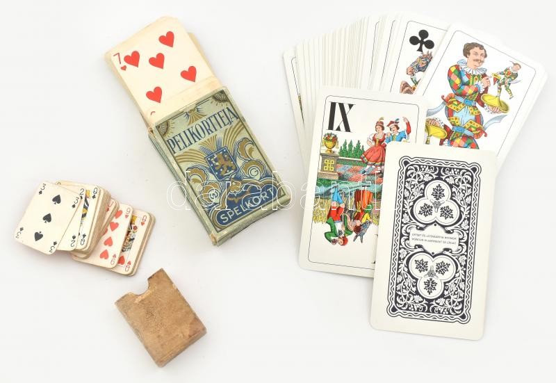 Beschreibung: 3 régebbi pakli játékkártya, vegyes állapotban