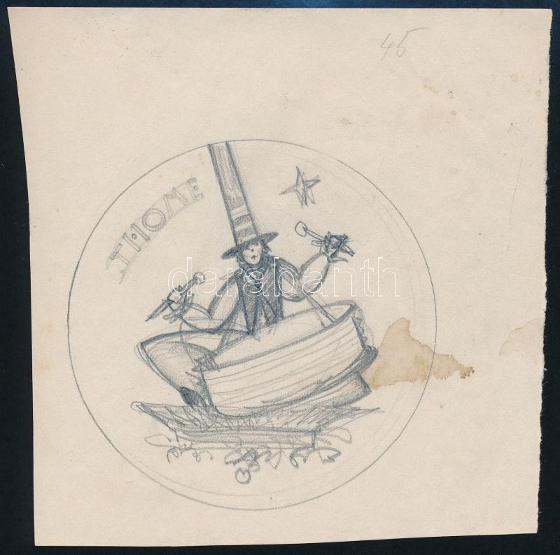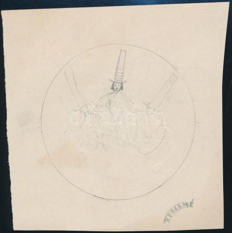 Beschreibung: Thomé csokoládé kétoldalas reklámterv, ceruza, papír. Jelzés nélkül. Foltos. d: 8,5 cm