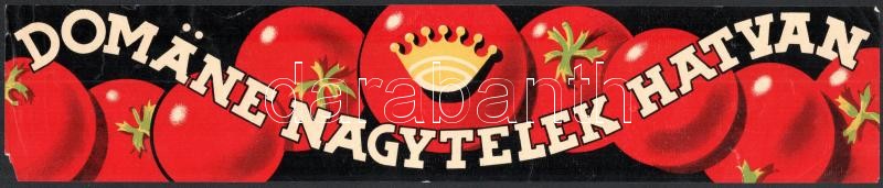 Beschreibung: cca 1920-1940 "Domäne Nagytelek Hatvan" paradicsom reklám nyomtatvány, a sarkán kis hiánnyal, 7x36 cm