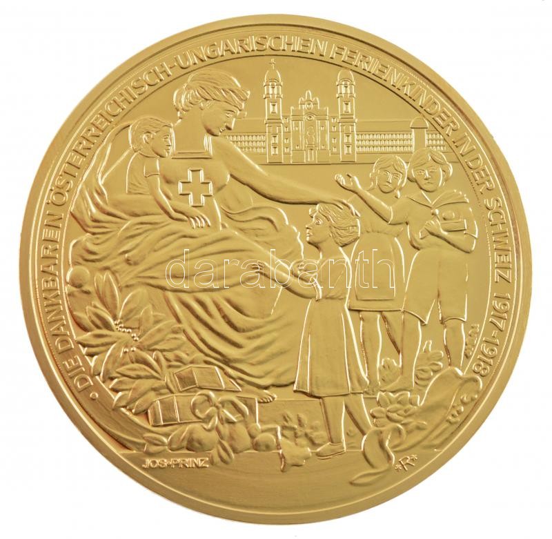 Beschreibung: DN "Magyar Aranyóriások - Aranyérem Zita királynő tiszteletére 1918" aranyozott Cu-Zn emlékérem T:PP