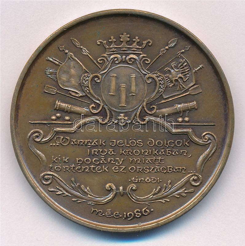 Fritz Mihály (1947-) 1986. "MÉE Szeged 1686. október 23. / Vannak jelös dolgok írva krónikában, kik pogány miatt történtek ez országban... Tinódi" bronz emlékérem (42,5mm) T:1-,2 Adamo SG16