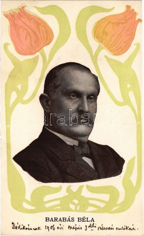 1906 Barabás Béla (1855-1934), jogász, közíró, országgyűlési képviselő, szenátor. Gonda Mihály kiadása. Art Nouveau, szecessziós tulipános lap