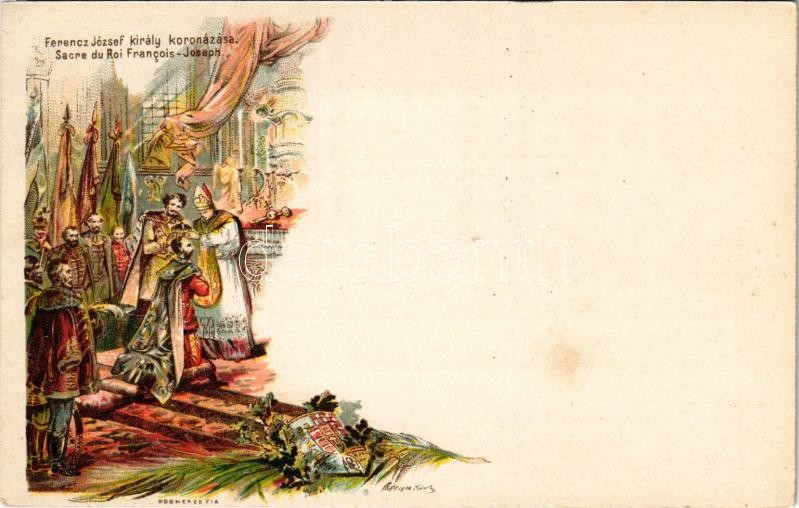 Ferenc József király koronázása. Ezredéves Országos Kiállítás / Sacre du Roi Francois-Joseph / coronation of Franz Joseph I of Austria. Hungarian Millennium Exhibition. barna 2kr Ga. litho s: Cserna K. (EK)