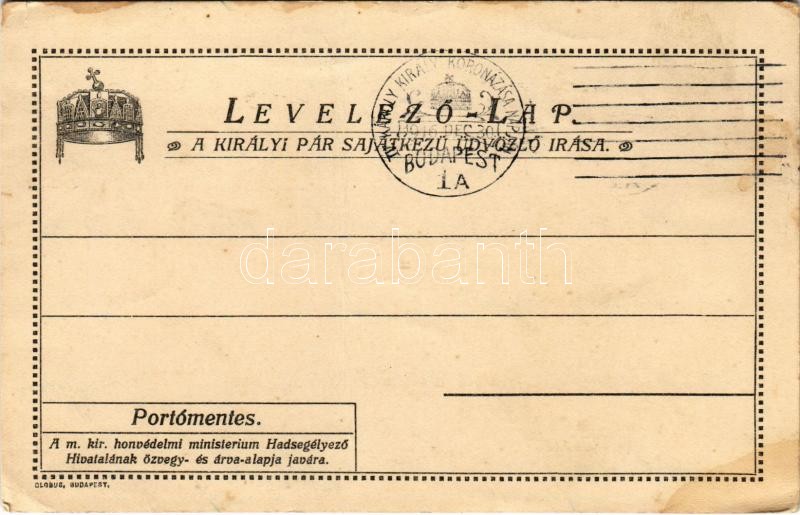 IV. Károly és Zita. A királyi pár saját kezű üdvözlő írása. IV. Károly koronázásának napján / Written greeting of Charles I of Austria and Queen Zita, on the day of the coronation of Charles + "IV. Károly király koronázása napján 1916. dec. 30. Budapest" So. Stpl. (fa)