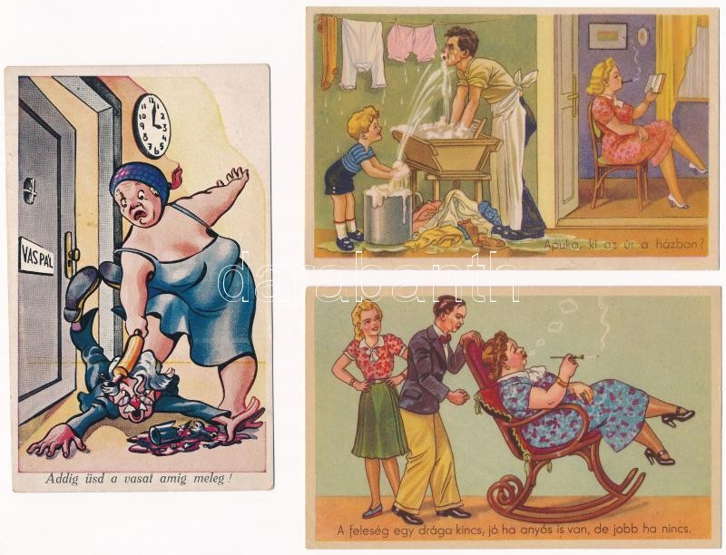 3 db régi humoros litho képeslap, házaspár humor / 3 pre-1945 humorous... https://www.darabanth.com/de/423-Fernauktion/423.0/Ansichtskarten/Humor~1500069/3-db-regi-humoros-litho-kepeslap-hazaspar-humor-3-pre-1945-humorous-postcards-husband-wife-h~II2593775