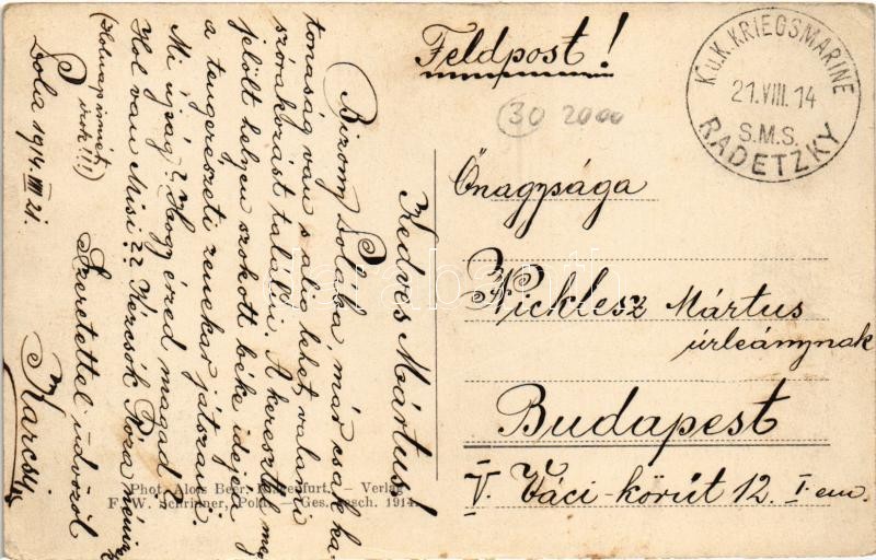 Beschreibung: 1914 Pola, Pula; Riva. Phot. Alois Beer. Verlag F. W. Schrinner + "K.U.K. KRIEGSMARINE SMS RADETZKY" (EK)