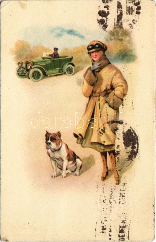 1922 Hölgy kutyával, autó / Lady with dog, automobile. Amag O.1. (EK) https://www.darabanth.com/de/423-Fernauktion/423.0/Ansichtskarten/Kunstlerkarten~1500080/1922-Holgy-kutyaval-auto-Lady-with-dog-automobile-Amag-O1-EK~II2688055