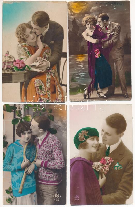 Beschreibung: 13 db RÉGI romantikus motívum képeslap vegyes minőségben: szerelmes párok / 13 pre-1945 romantic motive postcards in mixed quality: couples in love