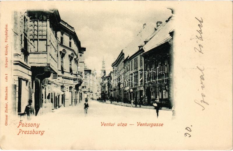 1902 Pozsony, Pressburg, Bratislava; Ventur utca, Willimszky Gyula üzl... https://www.darabanth.com/de/423-Fernauktion/423.0/Ansichtskarten/Slowakei~1500006/1902-Pozsony-Pressburg-Bratislava-Ventur-utca-Willimszky-Gyula-uzlete-Korper-Karoly-fenyke~II2691913