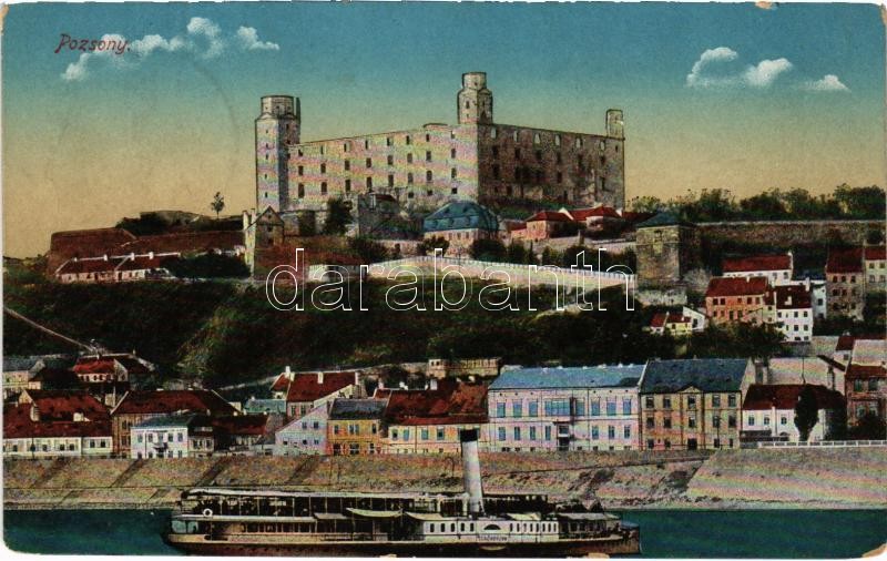Beschreibung: 1917 Pozsony, Pressburg, Bratislava; vár, gőzhajó / castle, steamship (Rb)