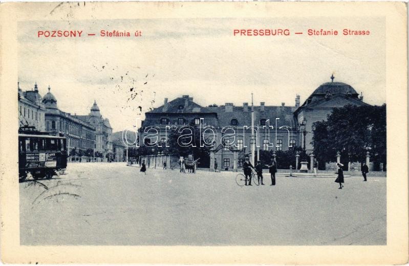 Pozsony, Pressburg, Bratislava; Stefánia út, villamos, Főhercegi palot... https://www.darabanth.com/de/423-Fernauktion/423.0/Ansichtskarten/Slowakei~1500006/Pozsony-Pressburg-Bratislava-Stefania-ut-villamos-Fohercegi-palota-street-tram-archduke~II2691841