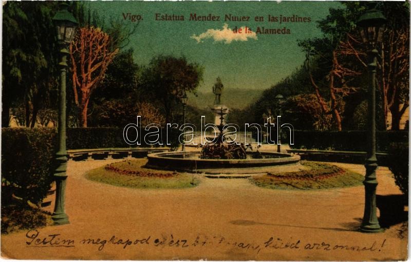 Beschreibung: 1915 Vigo, Estatua Mendez Nunez en las jardines de la Alameda / monument, park (EK)