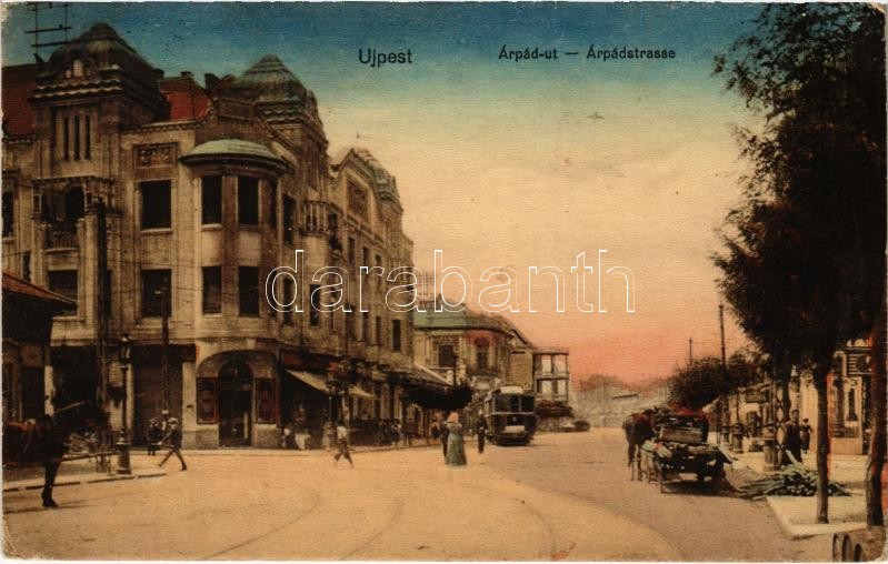 1906 Budapest IV. Újpest, Árpád és István út sarok, villamos, faszállí... https://www.darabanth.com/de/423-Fernauktion/423.0/Ansichtskarten/Ungarn~1500004/1906-Budapest-IV-Ujpest-Arpad-es-Istvan-ut-sarok-villamos-faszallito-lovasszeker-EK~II2691117