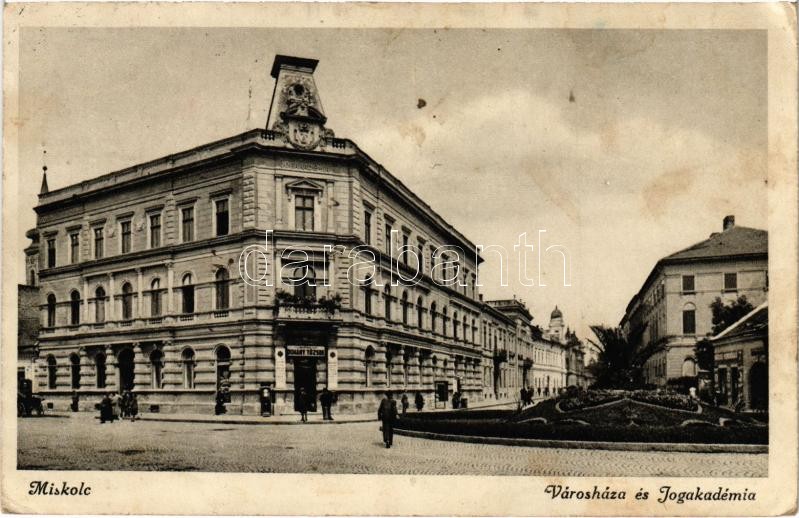 1942 Miskolc, Városháza és Jogakadémia (fl) https://www.darabanth.com/de/423-Fernauktion/423.0/Ansichtskarten/Ungarn~1500004/1942-Miskolc-Varoshaza-es-Jogakademia-fl~II2691737