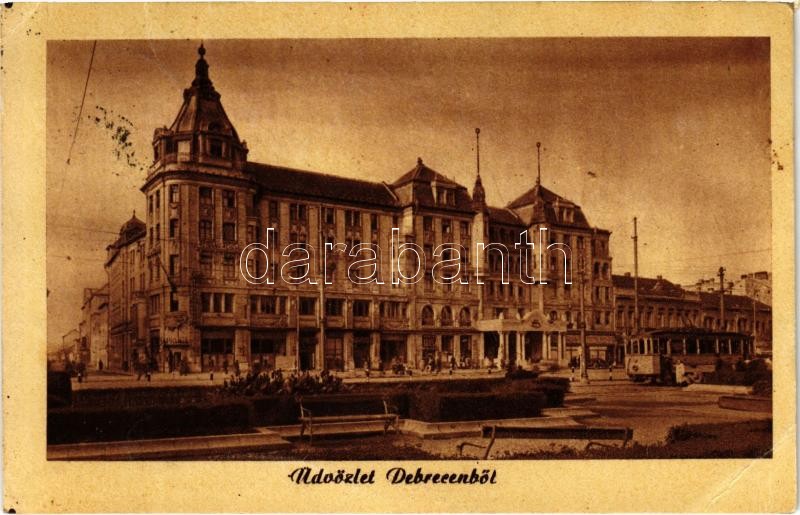 1954 Debrecen, Arany Bika szálloda, villamos. Képzőművészeti Alap Kiad... https://www.darabanth.com/de/423-Fernauktion/423.0/Ansichtskarten/Ungarn~1500004/1954-Debrecen-Arany-Bika-szalloda-villamos-Kepzomuveszeti-Alap-Kiadovallalat-EB~II2691740