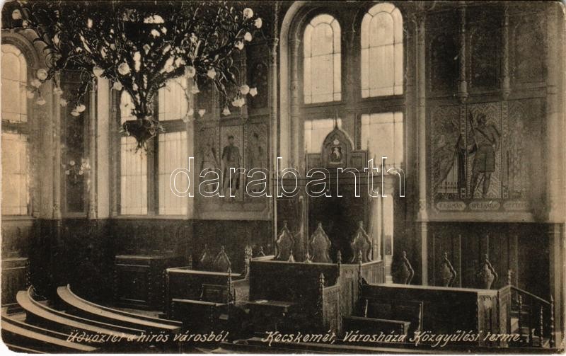 Kecskemét, Városháza belső, közgyűlési terem. G. Fekete Mihály kiadása... https://www.darabanth.com/de/423-Fernauktion/423.0/Ansichtskarten/Ungarn~1500004/Kecskemet-Varoshaza-belso-kozgyulesi-terem-G-Fekete-Mihaly-kiadasa-szakadas-tear~II2687400